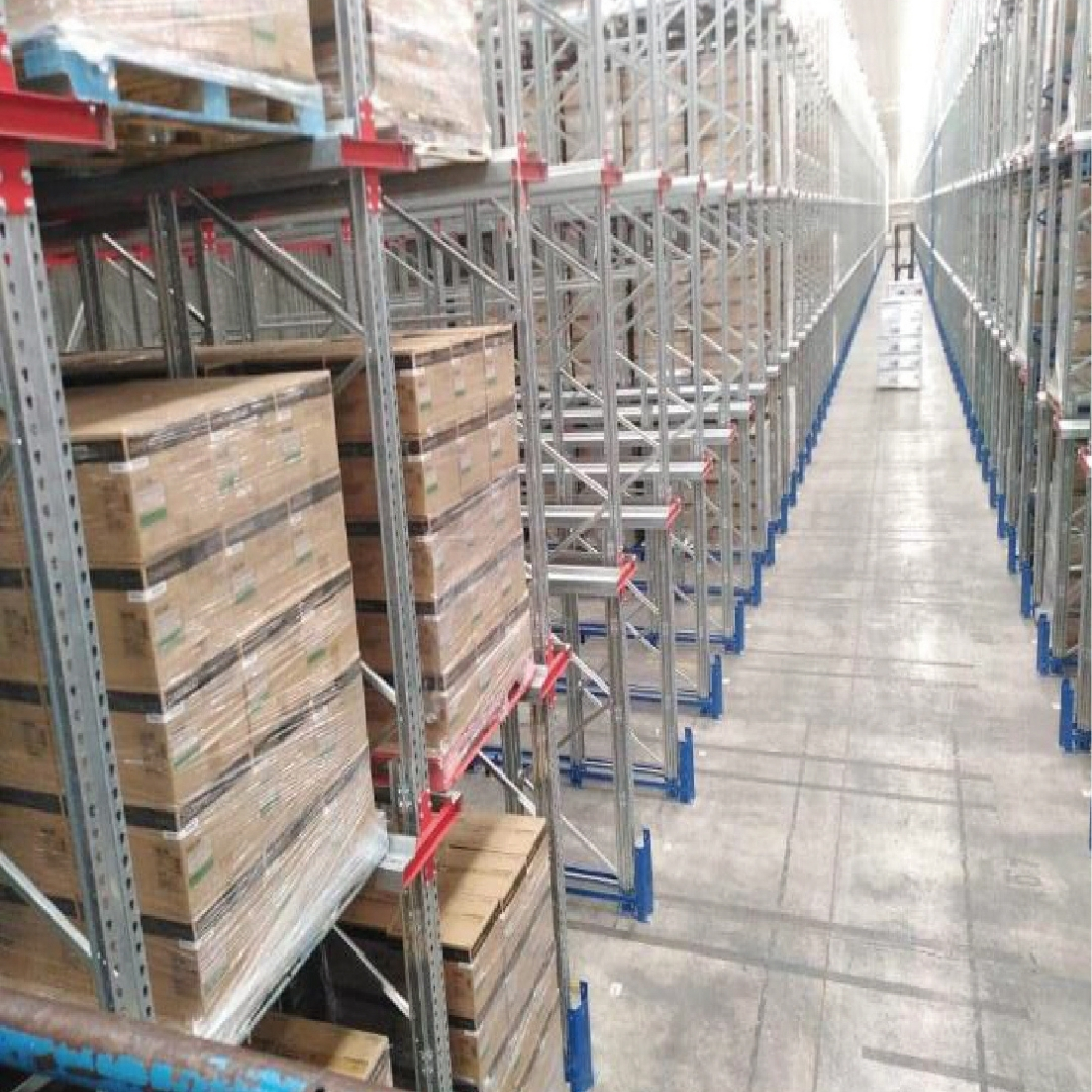 Sistema compacto donde los montacargas ingresan al interior del rack para almacenar varias tarimas en profundidad. Máxima utilización del espacio. Elimina pasillos entre estanterías. Ideal para productos homogéneos con baja rotación y muchas tarimas por referencia.