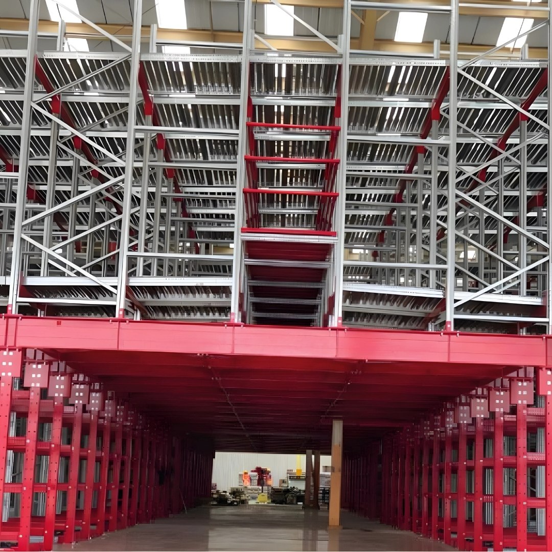 Estructura vertical modular para almacenamiento manual en niveles, optimiza espacio en altura.